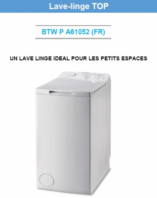 Lave Linge TOP INDESIT référence = BTWPA61052FR